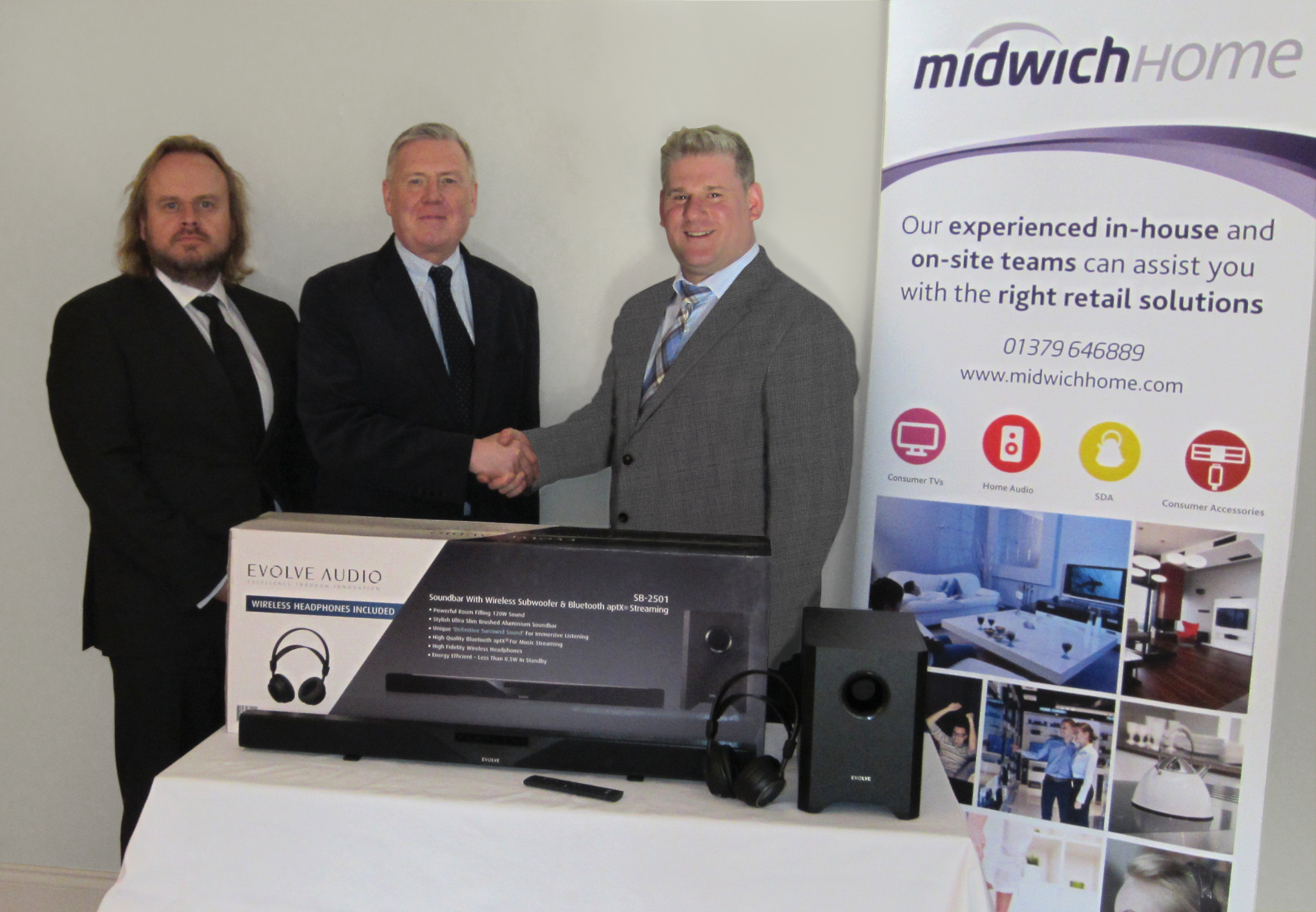 Evolve Audio, a new brand in the consumer electronics market, has appointed MidwichHome as its UK & Northern Ireland distribution partner to the independent retailer channel. Evolve Audio was established in 2013 and is owned by Taiwanese manufacturer Janky Inc. The company is now launching its first product in the UK – the SB-2501 soundbar – after two years in development and has a product roadmap of CE goods launching throughout the rest of the year and well into 2017. Philip Bass, Sales and Marketing Director at Evolve Audio, said: “We are very excited to be launching our first product, as the work behind the scenes has been immense. It was vital that we worked with a focused and experienced team from launch, and I am delighted to be partnered with MidwichHome as we look to develop a high-quality distribution network across the UK.” The SB-2501 soundbar incorporates Evolve Audio’s own ‘Definitive Surround Sound’ DSP, a wireless subwoofer, aptX Bluetooth streaming and a pair of integrated lossless wireless headphones in a one-box package. The unit has a slim design and is finished in brushed aluminium. Neil Drain, Divisional Manager Retail at MidwichHome, said: “As soon as we saw the SB-2501, we knew that it was a product that would be very competitive in the UK market and we see our customers getting behind it in a big way. We look forward to working with Philip and the team as the brand expands its product range and firmly expect it to be a huge success in both the UK and Northern Ireland.” “Since seeing Evolve Audio’s prototype products, we have been excited about the brand and the direction it is taking,” added Andy Bott, Category Manager, Consumer AV at MidwichHome. “We were particularly impressed with the quality of the finish and the easy setup, which we know our customers are going to like. We are convinced Evolve Audio will be a force for the future and it will be a key focus brand for us over the coming months.” Pictured (left to right): Andy Bott, Neil Drain, Philip Bass
